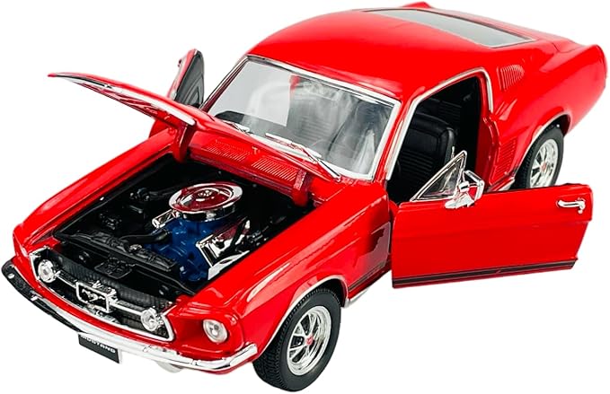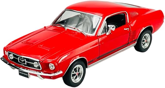 Welly Ford Mustang GT 1967 Coupé Rosso 1/24 Modellino Auto in Metall Die Cast Nuovo nella sua Scatola. Il veicolo misura circa 16 cm di lunghezza. Metallo con parti in plastica, con portiere anteriori apribili. Il modello è nella sua confezione originale. Scala 1:24. Rosso.
